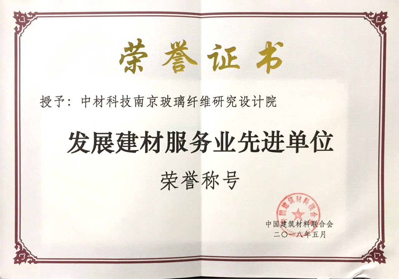 中材科技南京玻纖院榮獲“發展建材服務業先進單位”稱號